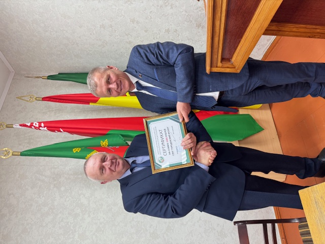 Юрий Шумский, который вручил сертификат для бля благоустройства бытовых помещений Городокского лесхоза.